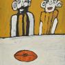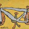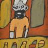 Alfonso Puautjimi (1969- ) is an established artist who has worked at Ngaruwanajirri Inc. for over 20 years, having started painting with the group in 1997. He is one of the many artists there with a distinctive and individual style of expression, and whose painting has moved from strength to strength over the past decade. The subject matter of his stylistically individual ochre paintings is drawn from his every day environment: including figures in the painting studio, houses, planes, cars and bicycles.