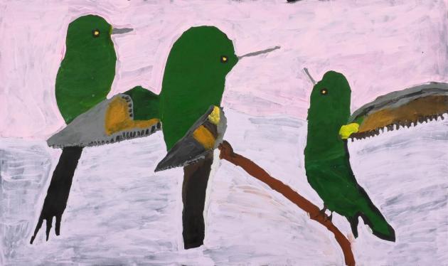 Nyangulya Katie Nalgood, Three Green Parrots Arguing, #20-143